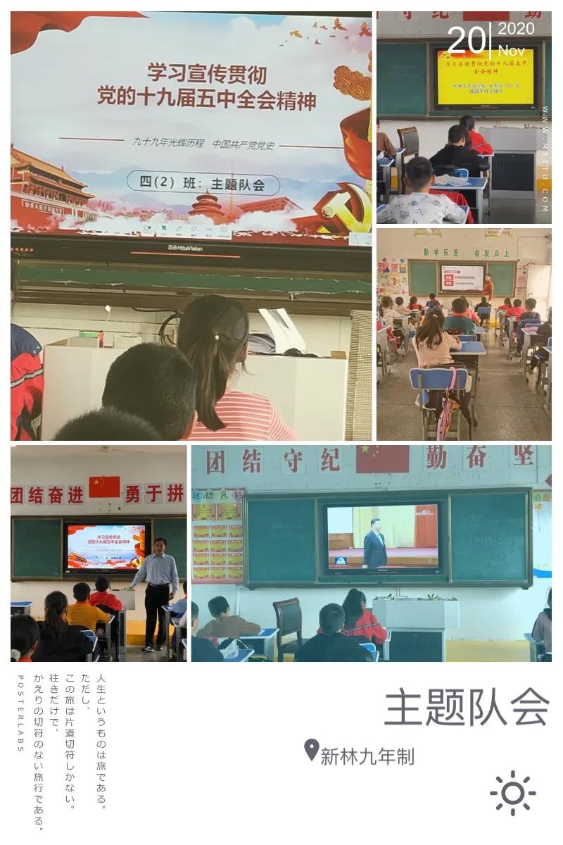 新林九年制学校按照团中央《关于认真学习宣传贯彻党的十九届五中全会精神的通知》要求,积极动员少先队中队,组织少先队员,通过各种活动方式,认真学习领会全会精神。