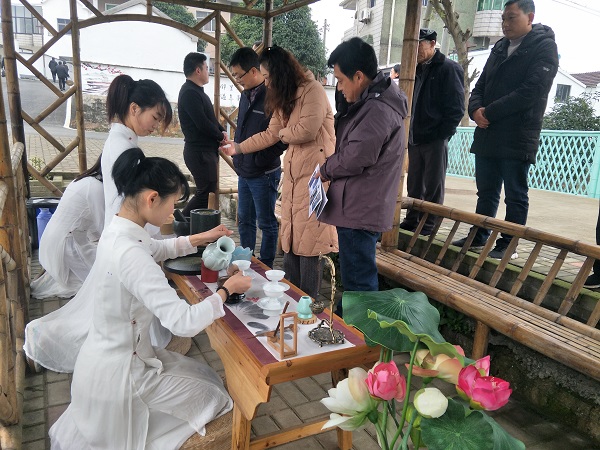 为进一步将校园社团文化与地方的经济文化建设紧密结合,受孙村镇政府邀请,12月9日,校茶艺社团在专业指导老师卢寅的带领下来到孙村镇水口村,为省领导实地查看茶香水口建设情况,展示了茶艺文化的制作工艺。