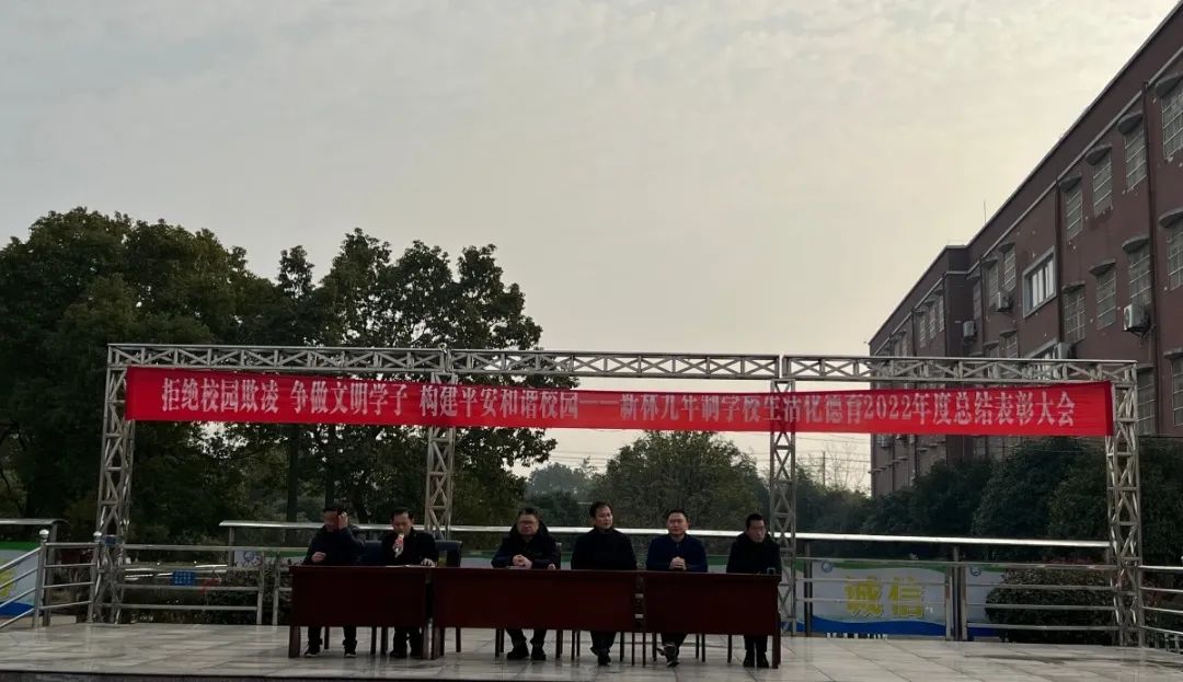 为促进全校学生身心健康,保障校园安全、维护校园稳定、推进平安校园、和谐校园建设提供良好的环境;表彰优秀,鼓励先进,树立典范,营造浓厚的学习氛围,进一步调动全体学生的学习积极性。在2023年2月4日上午,新林九年制学校召开了以“拒绝校园欺凌,争做文明学子,构建和谐校园”为主题的专项动员大会暨学校生活化德育2022年总结表彰大会。大会由杭国华副校长主持,大会流程分为以下五项。