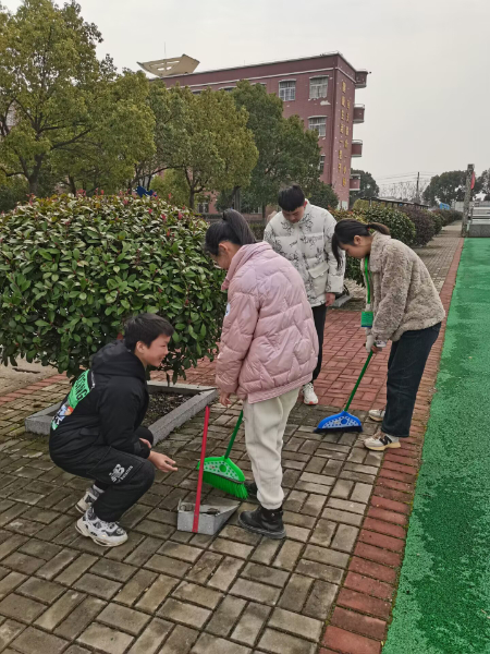 同学们根据各自的卫生责任区,分别就运动场、小学部教学楼前广场、校园池塘边以及中学部后面的小树林等地进行清扫活动。有的同学负责将垃圾清扫出来,有的负责将垃圾送到垃圾桶。相互配合,个个干劲实足,发扬不怕累、不怕脏的精神。经过一段时间的清扫,学校内部卫生环境焕然一新,既干净又亮洁。虽然同学们有些疲惫,但是看到整洁的校园环境,也觉得是值得的。